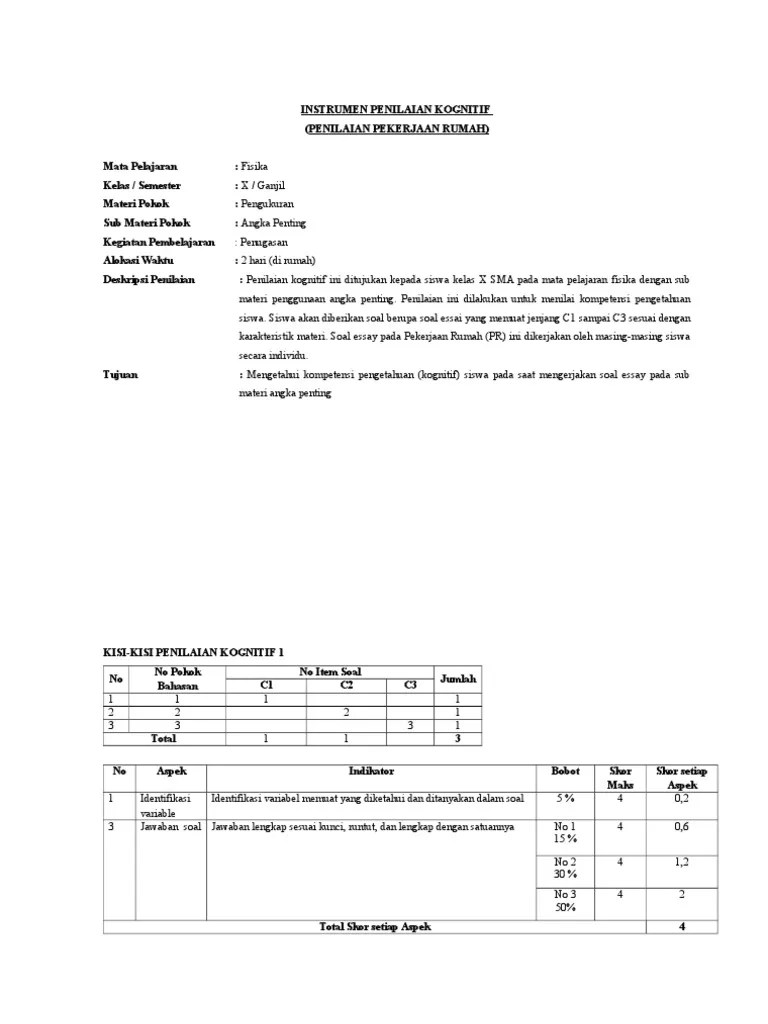 Contoh Instrumen Penilaian Kognitif - Rubrik Penilaian Kognitif I Pdf / Cukup jika menunjukkan ada sedikit usaha ambil bagian dalam pembelajaran .